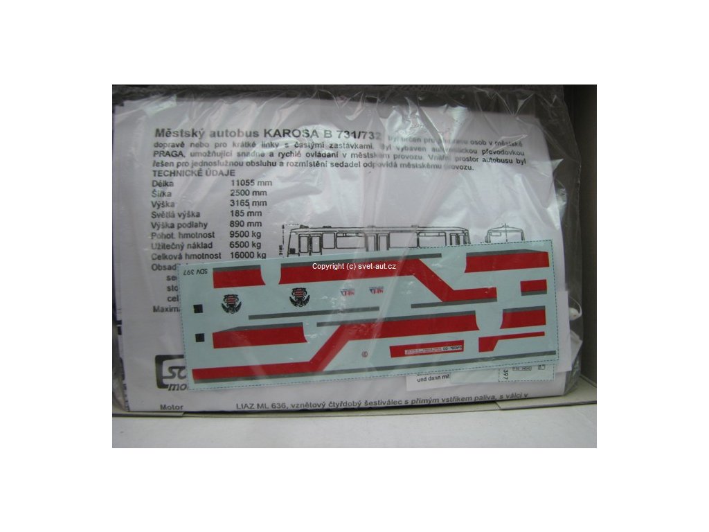 Plastiková stavebnice Autobus Karosa B-732 MHD Banská Bystrica 1:87 SDV 397. Stavebnice je lisována z probarveného plastu. Lepidlo ani barvy nejsou součástí stavebnice