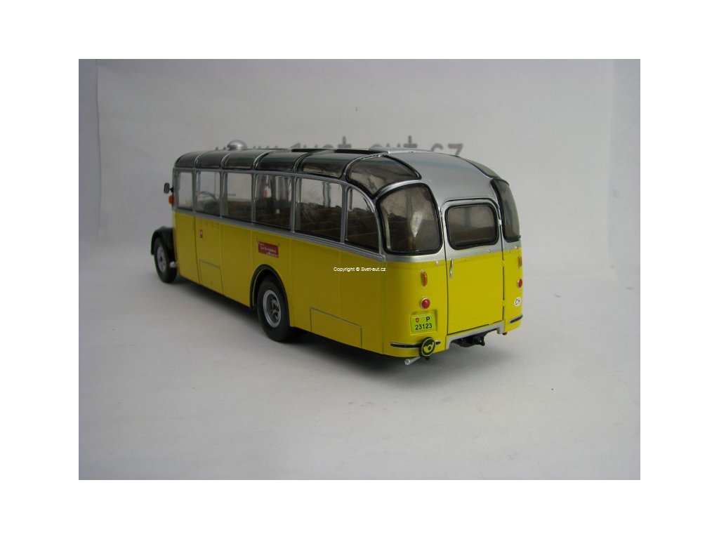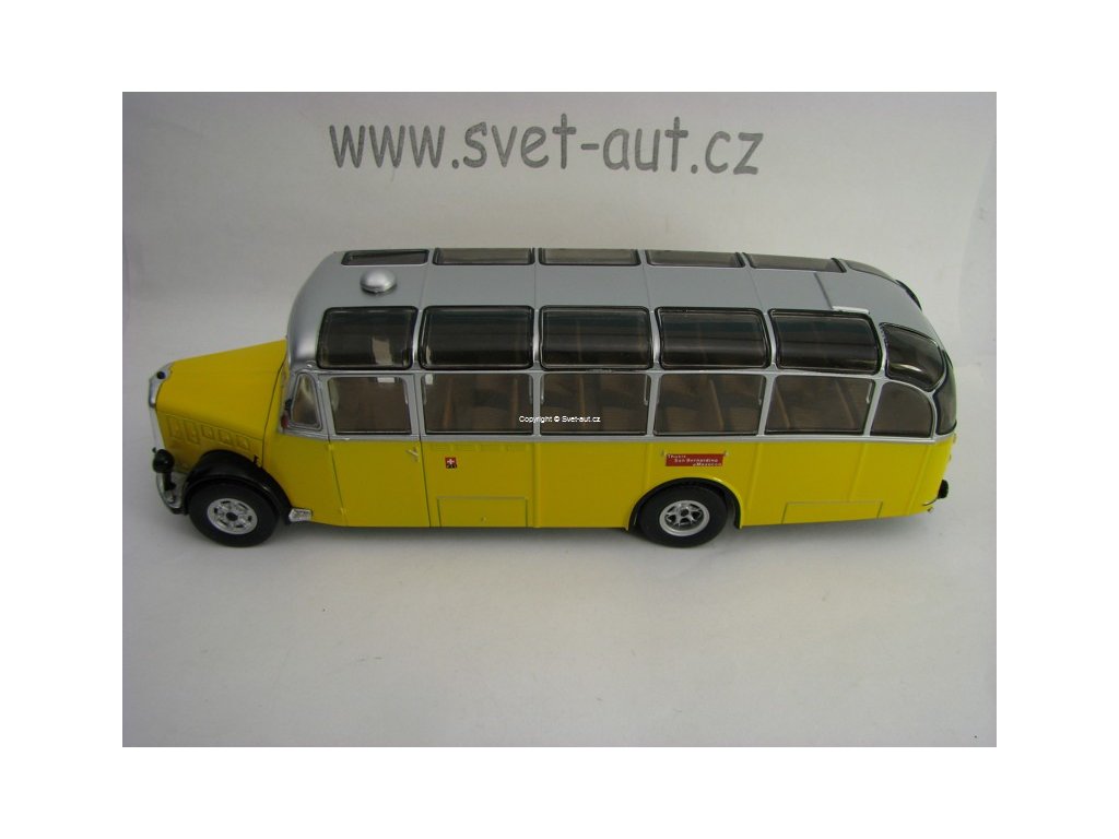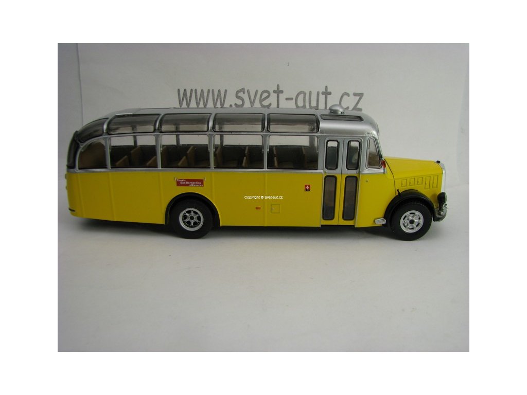 Kovový model s plastovými díly. Autobus Saurer L4c 1959 1:43 Atlas. Délka modelu je 21 cm. Baleno v blistru. Blistr může být otevřen kvůli nafocení modelu.