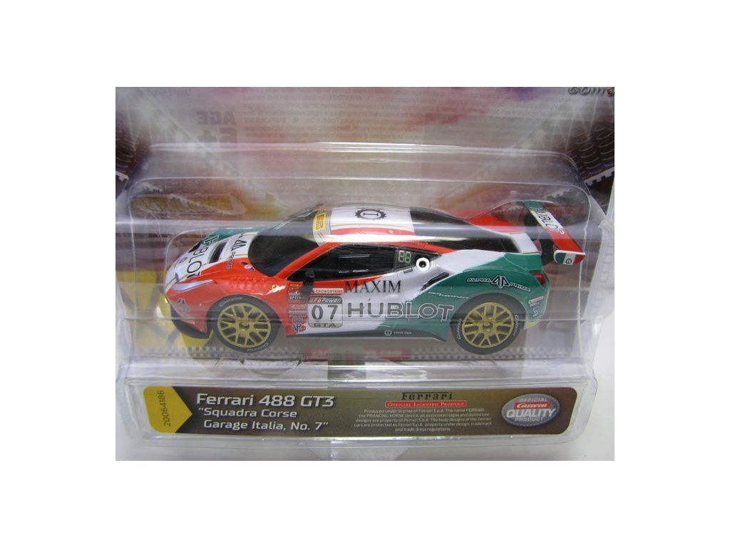 Plastové auto pro autodráhu řady Carrera GO!!! v měřítku 1:43. Auto obsahuje dvojité kontaktní kartáčky, magnet a vodící lištu. Autodráhový model Ferrari 488 GT3 Squadra Corse No.07 Auto 1:43 Carrera GO. Délka modelu je 11 cm. CRR64186