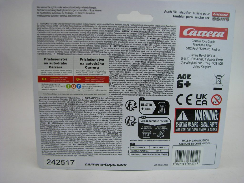 Plastové auto pro autodráhu řady Carrera GO!!! v měřítku 1:43. Auto obsahuje dvojité kontaktní kartáčky, magnet a vodící lištu.
