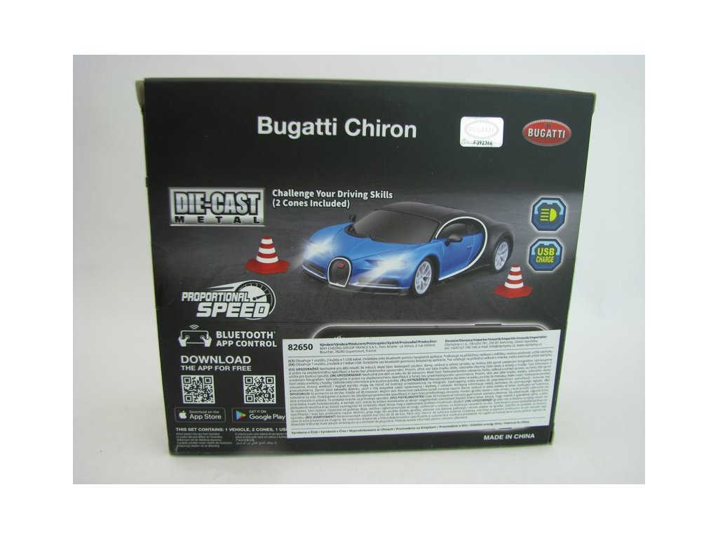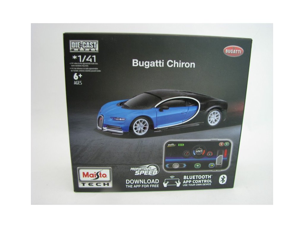 Bugatti Chiron Bluetooth control 1:41 Maisto 82650. Vestavěná dobíjecí baterie.