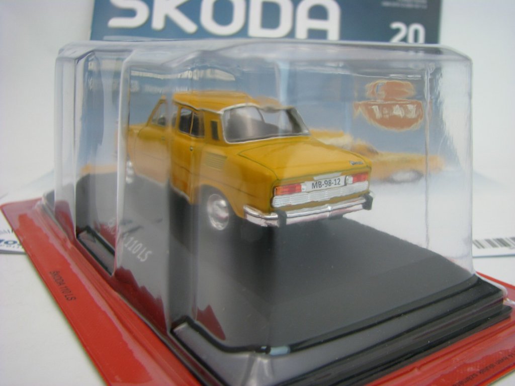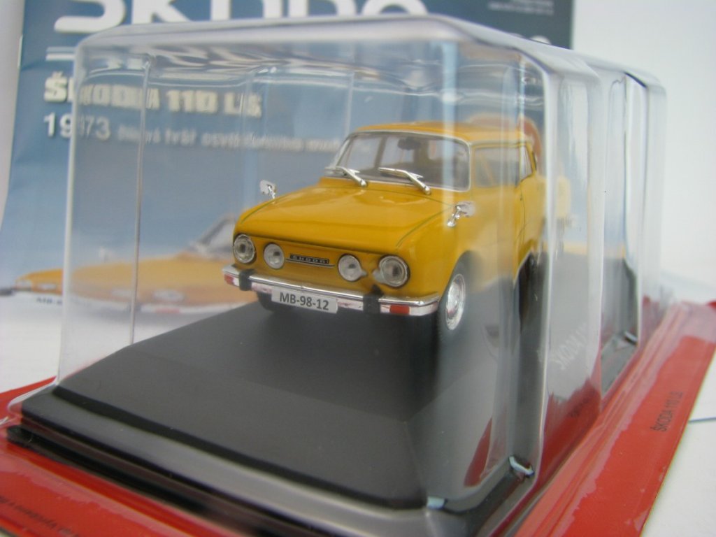 Kovový model s plastovými díly. Časopis 20 s modelem Škoda 110 LS 1973 Orange 1:43 Atlas Deagostini. K modelu je možno přikoupit plastovou vitrínku, která přesně pasuje na podstavec. DEA-VHVMM15