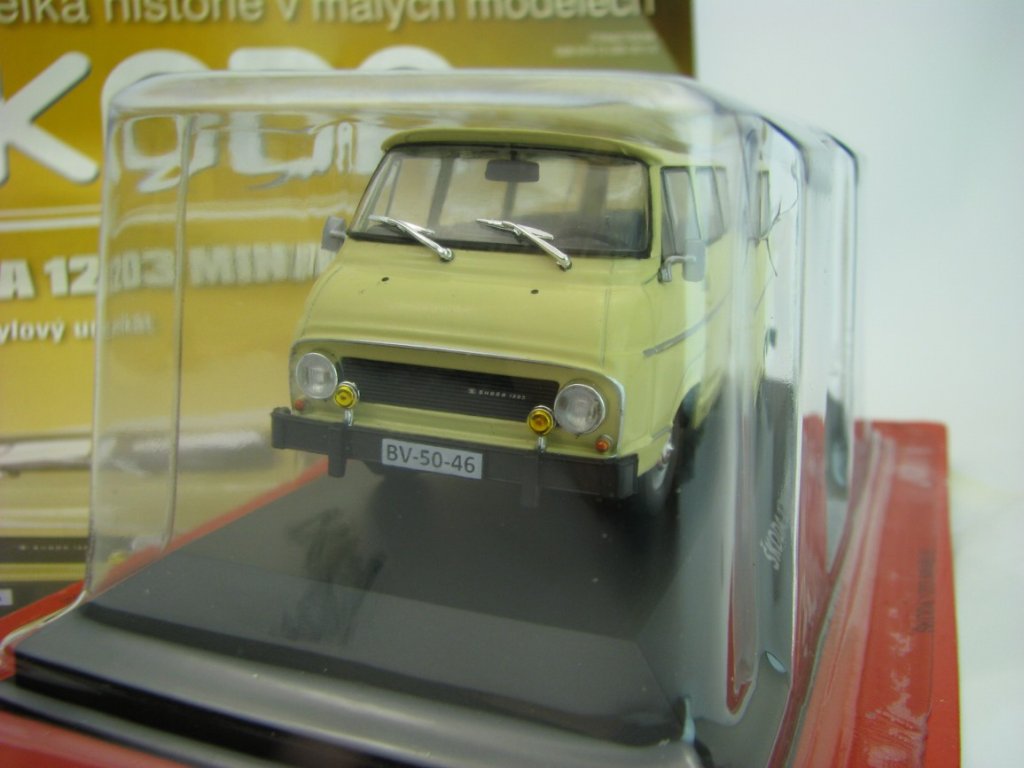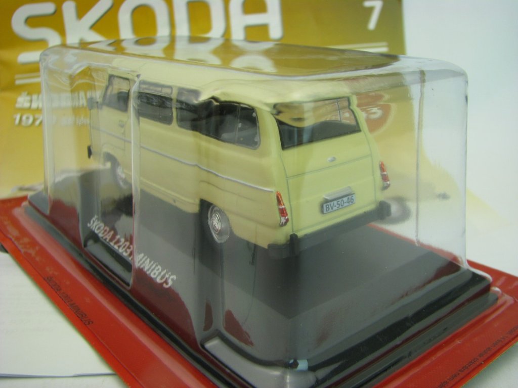 Kovový model s plastovými díly. Časopis 7 s modelem Škoda 1203 1979 Yellow 1:43 DeAgostiny. Délka 9,5 cm. K modelu je možno přikoupit plastovou vitrínku, která přesně pasuje na podstavec. DEA-VHVMM07
