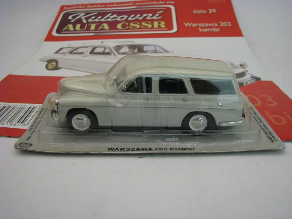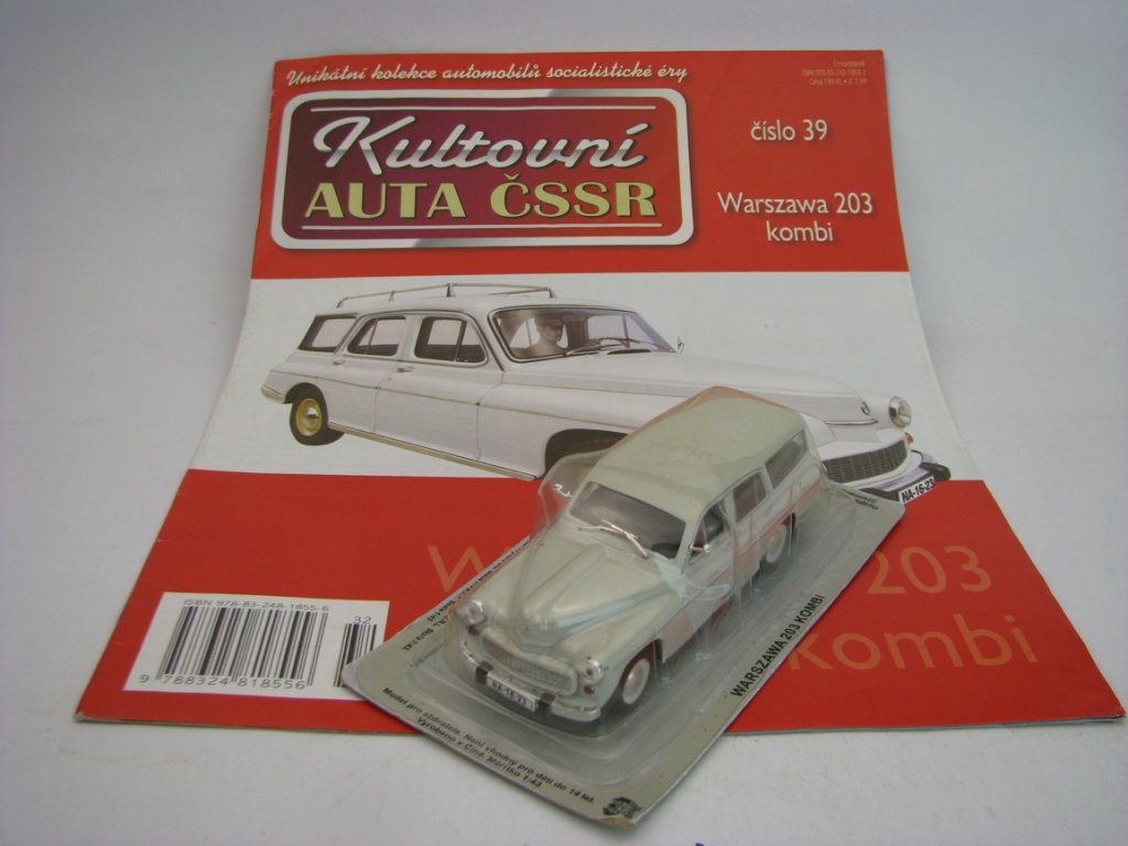 Časopis Kultovní Auta 39 s modelem Warszawa 203 Kombi Bílá 1:43 DeAgostini