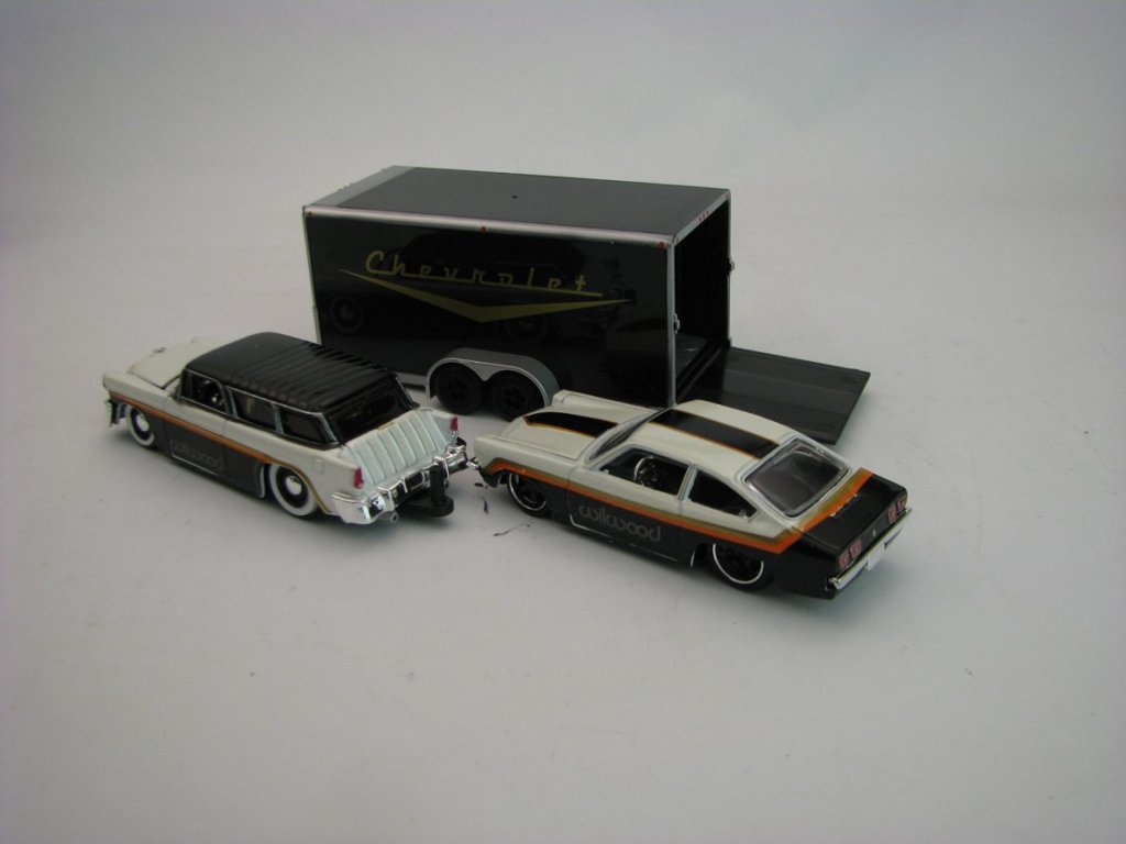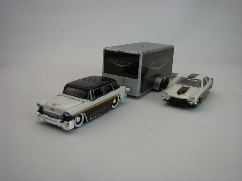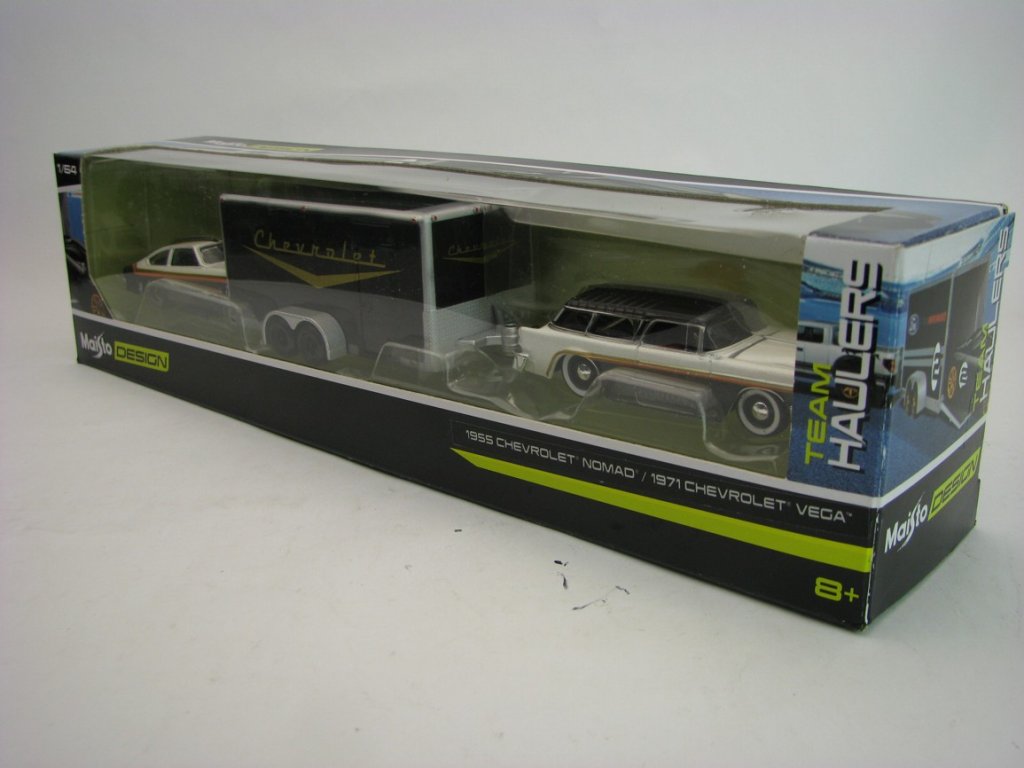 Chevrolet Nomad 1955 s přívěsem Chevrolet a Chevrolet Vega 1971 Team Haulers 1:64 Maisto 11404