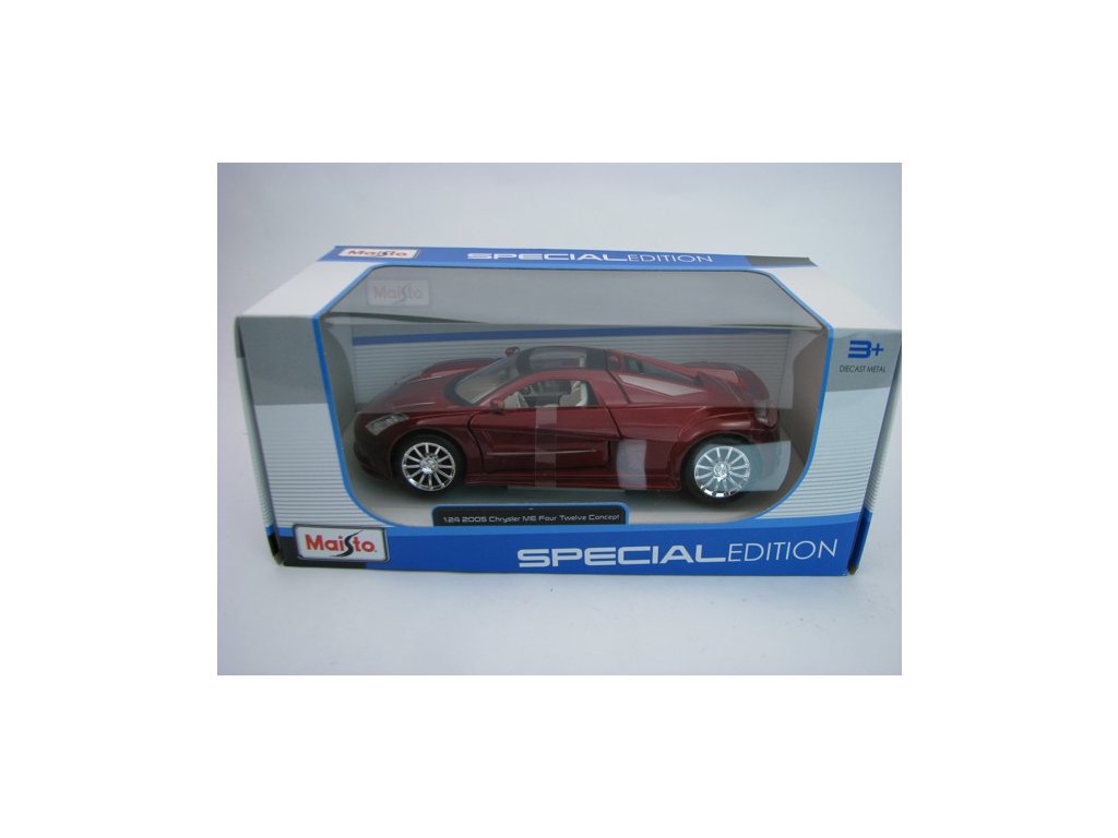 Kovový model s plastovými díly. Chrysler ME Four Twelve Concept 2005 Vínová 1:24 Maisto. Model má otevírací dveře. Délka modelu 18 cm. Modely jsou na prodejně v Děčíne, připraveny ihned k odeslání, nebo osobnímu převzetí. MST31250