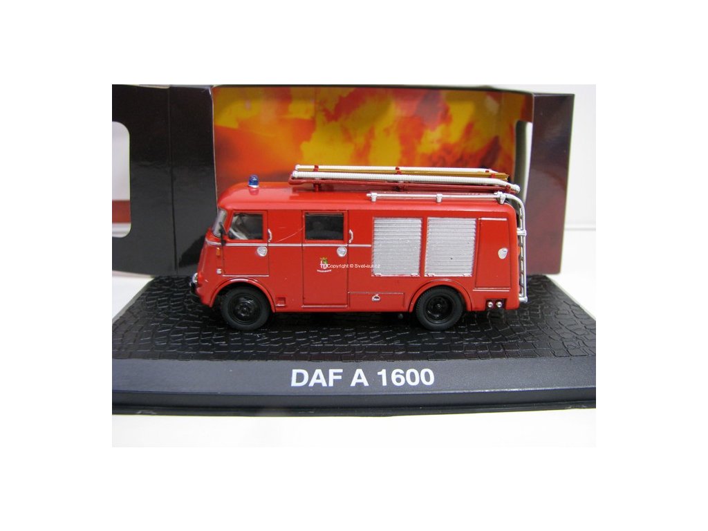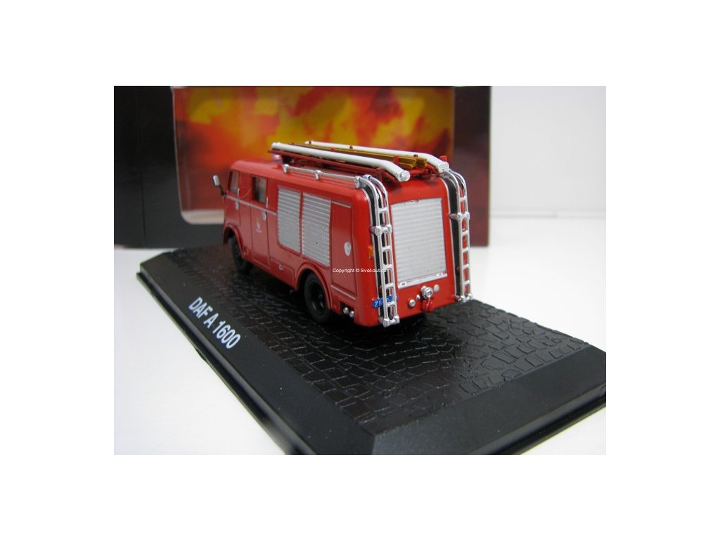 Kovový model s plastovými díly. DAF A 1600 Hasiči 1:72 Atlas. Délka modelu je 9 cm. Model je na podstavci v plastové vitrínce. Nafocen je originál model, který obdržíte. Skladem pouze 1 ks.Doplňkové parametry