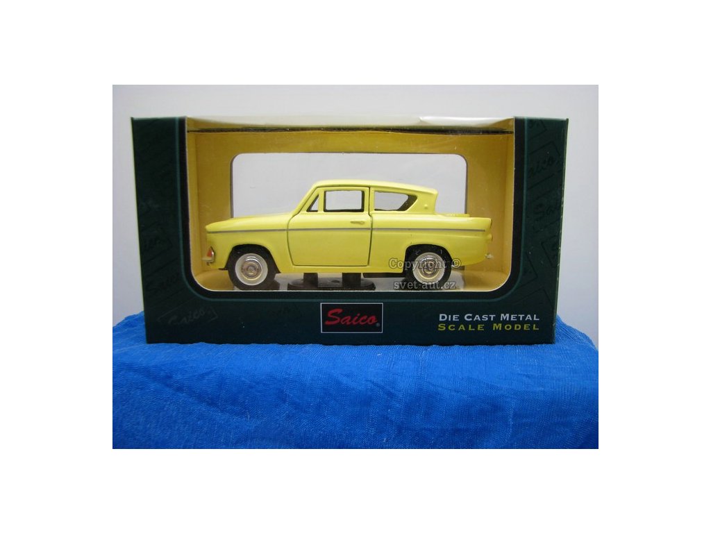 Výprodej posledních kousků. Neváhejte tyto modely se již nevyrábí. Kovový model Ford Anglia yellow 1:32 Saico, délka 12 cm. Model má otevírací dveře a pohon na zpětné natahování.Diskuze