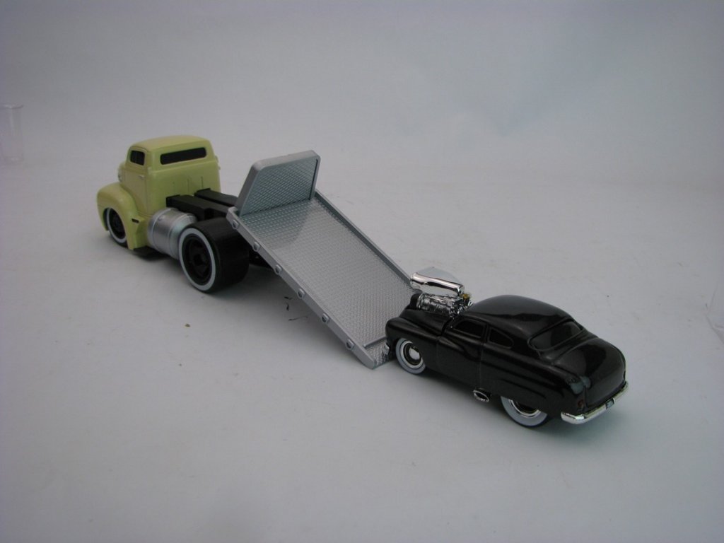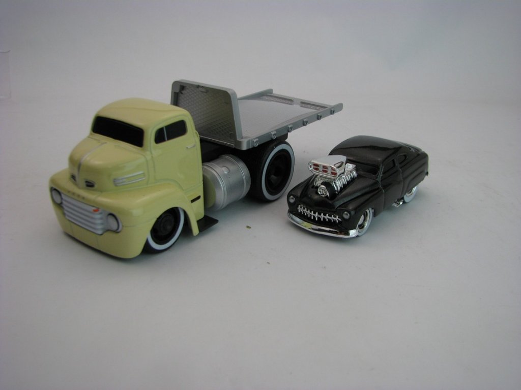 Ford přeprava aut 1950 a Mercury 1949 Muscle Machines 1:64 Maisto. Ford délka 13 cm, Mercury 7,5 cm.