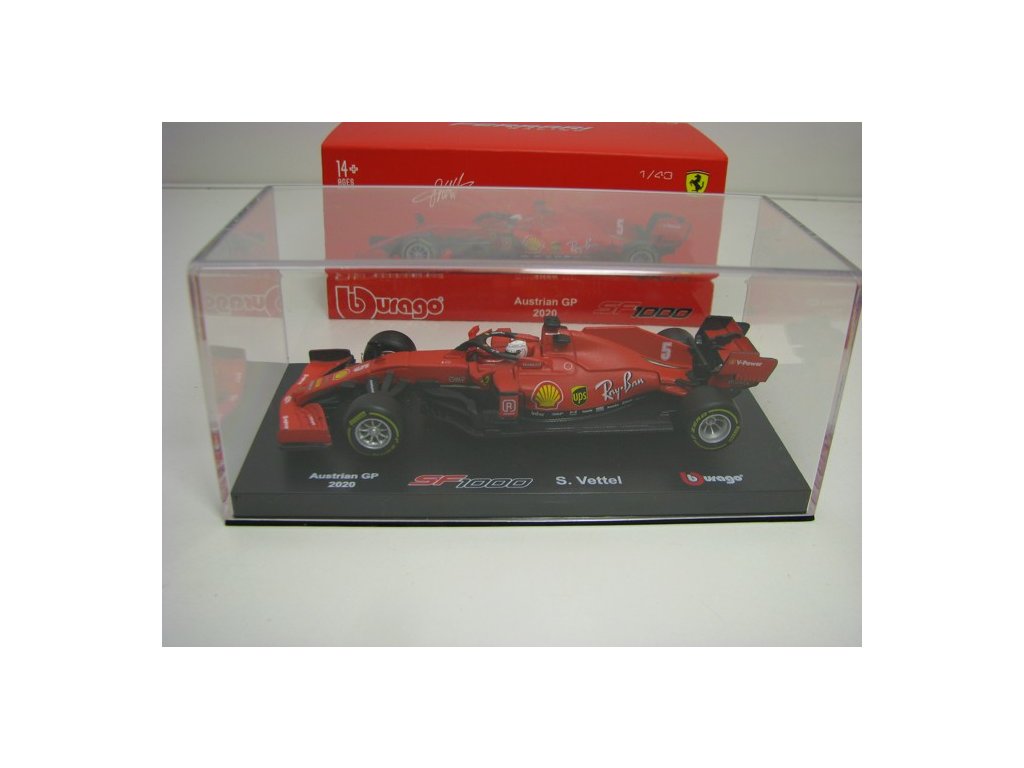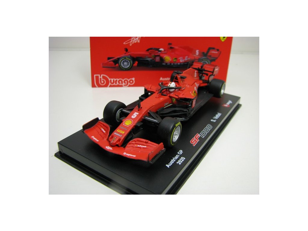 Kovový model s plastovými díly. Formule 1 Ferrari SF1000 No.5 Vettel Astralian GP 2020 1:43 Bburago 36819. Délka modelu je 12 cm. Model je skladem ihned k odeslání. Veškeré zboží odesíláme do 24 hodin od přijetí objednávky. BB-36819VM
