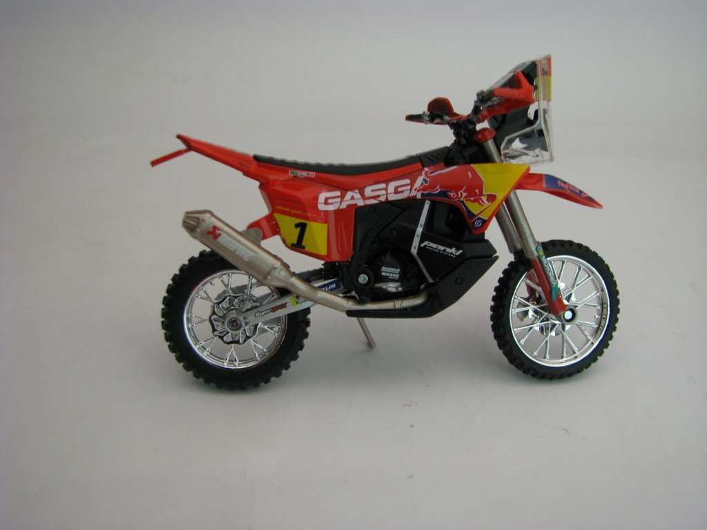 Kovový model s plastovými díly. Gasgas RX450F Dakar 2023 Red Bull 1:18 Bburago 51091. Délka 12 cm. BB-51091