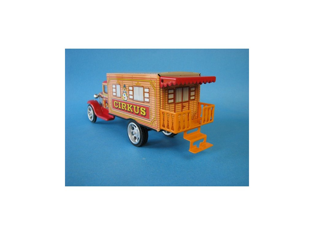 Hračka vyrobená s potištěného plechu. Hawkeye Cirkus No.8 1:32 Kovap plechové hračky. Délka auta je 20 cm.Diskuze
