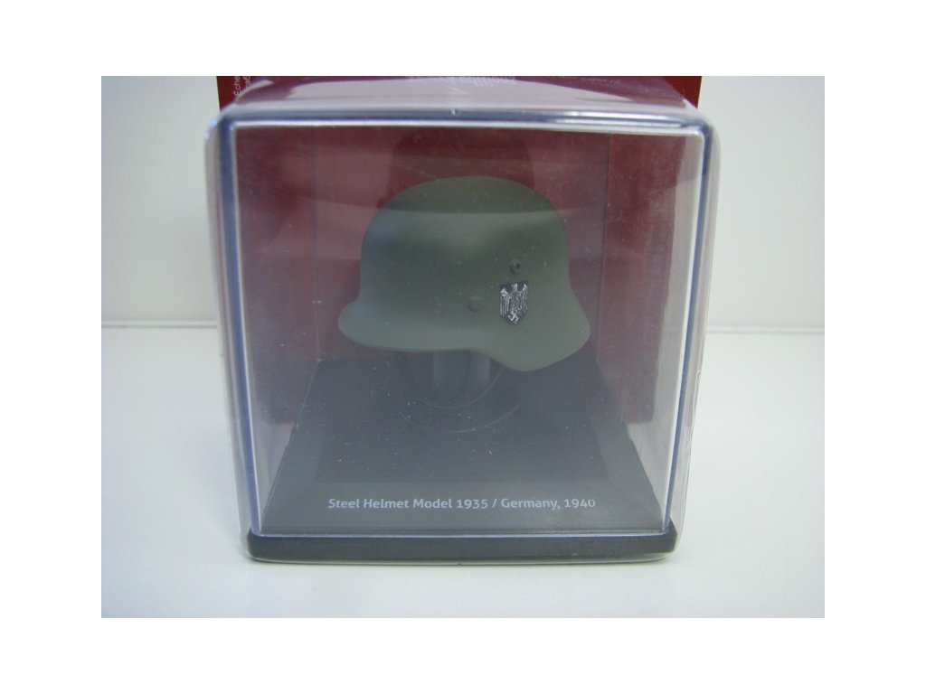 Kovový model. Historical Military Helmets model 1935 Germany 1940 1:5 Minimax. Průměr 5 cm. v plastové vitrínce 8x8x8 cm.