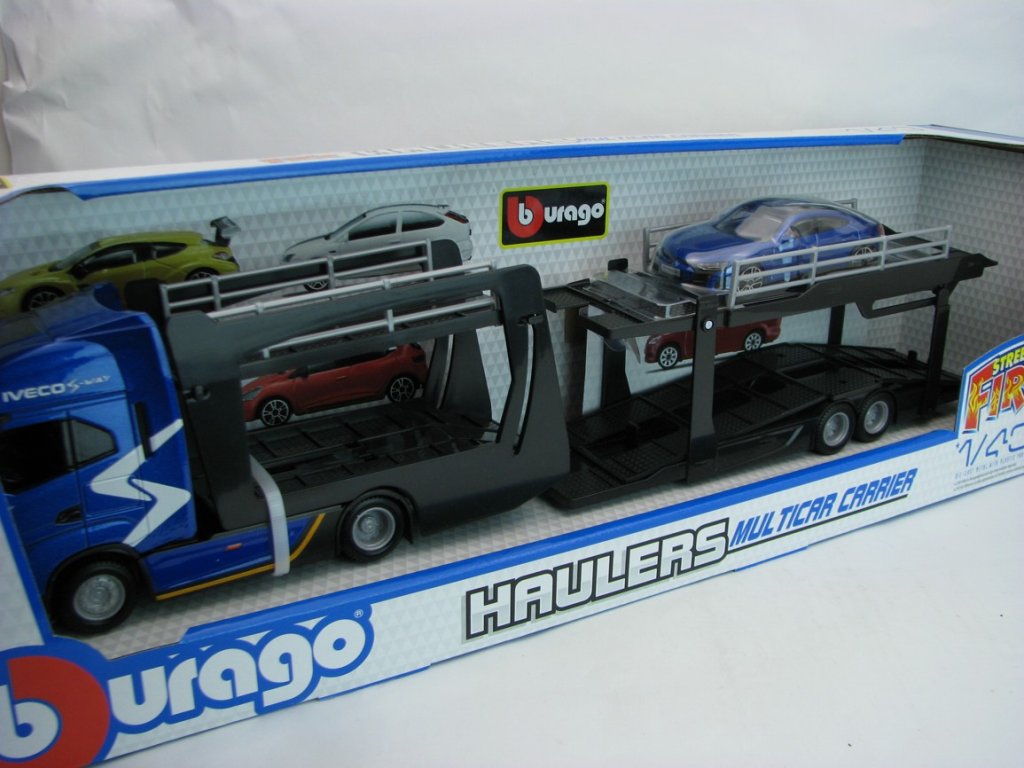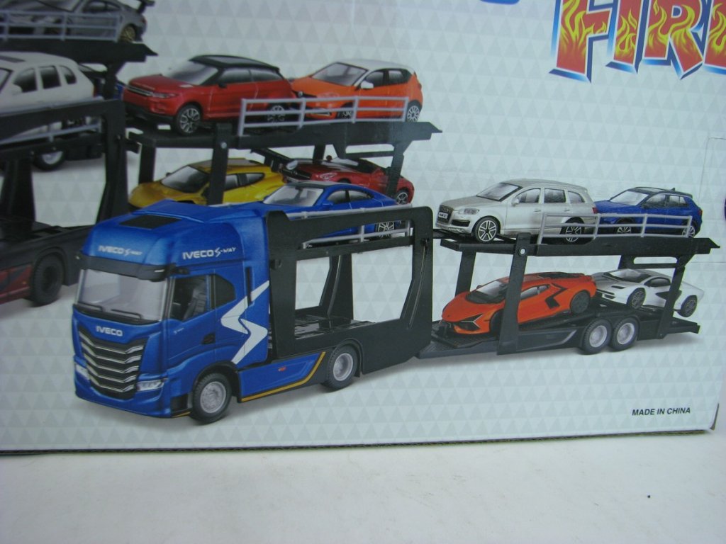 Iveco S-WAY 570 Přepravník aut s přívěsem a Audi RS Blue 1:43 Bburago