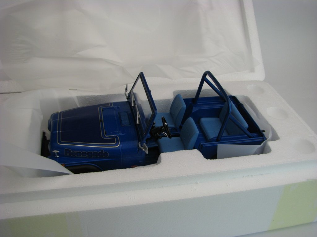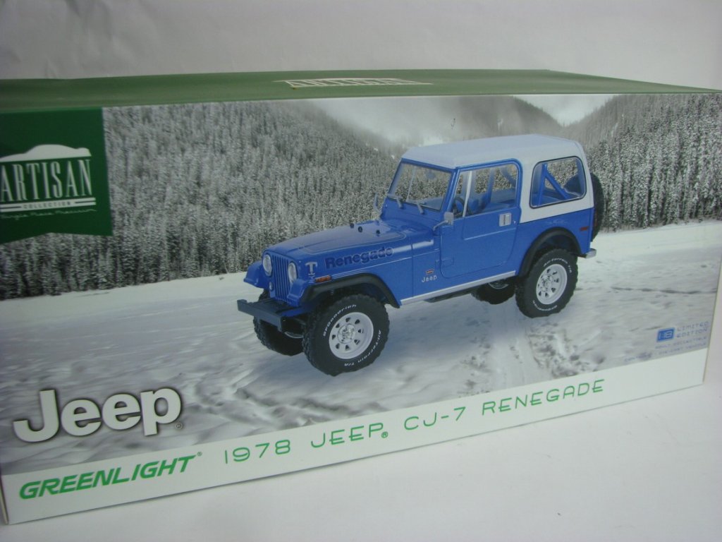 Jeep CJ-7 Renegade 1978 Blue 1:18 Greenlight 19139. Kovový model s plastovými díly.
