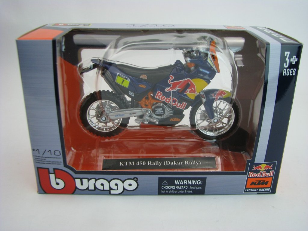 KTM 450 Rally (Dakar Rally) No.1 Cyril Desires Red Bull 1:18 Bburago. Kovový model s plastovými díly. Délka 11,5 cm. BB-51071