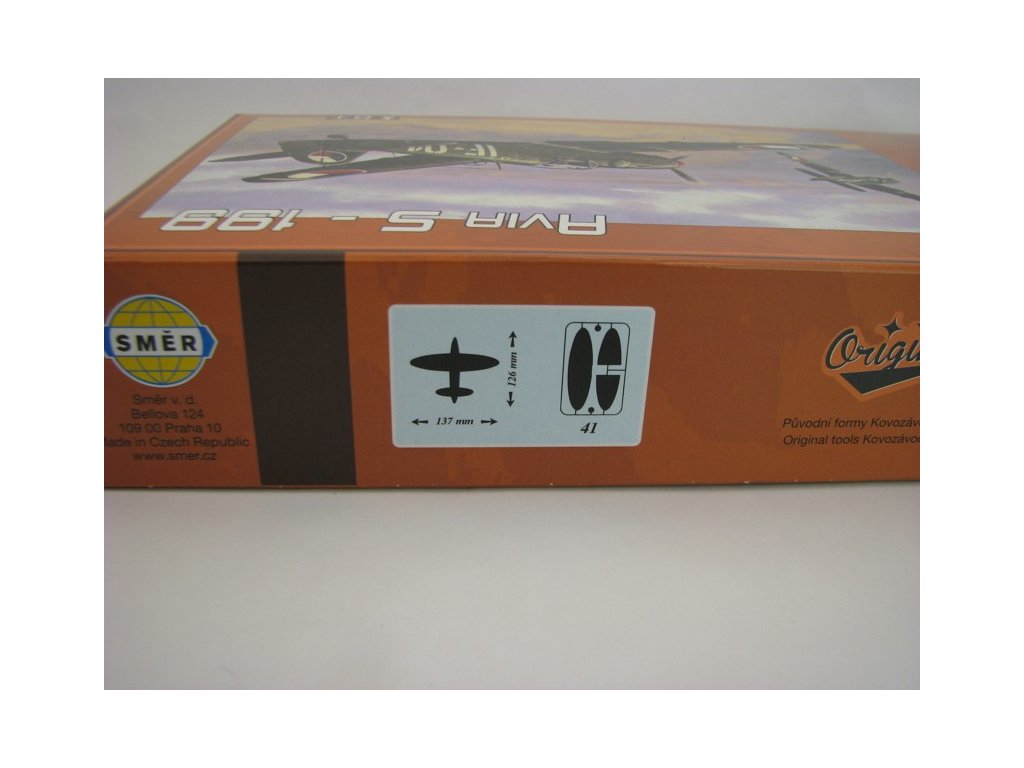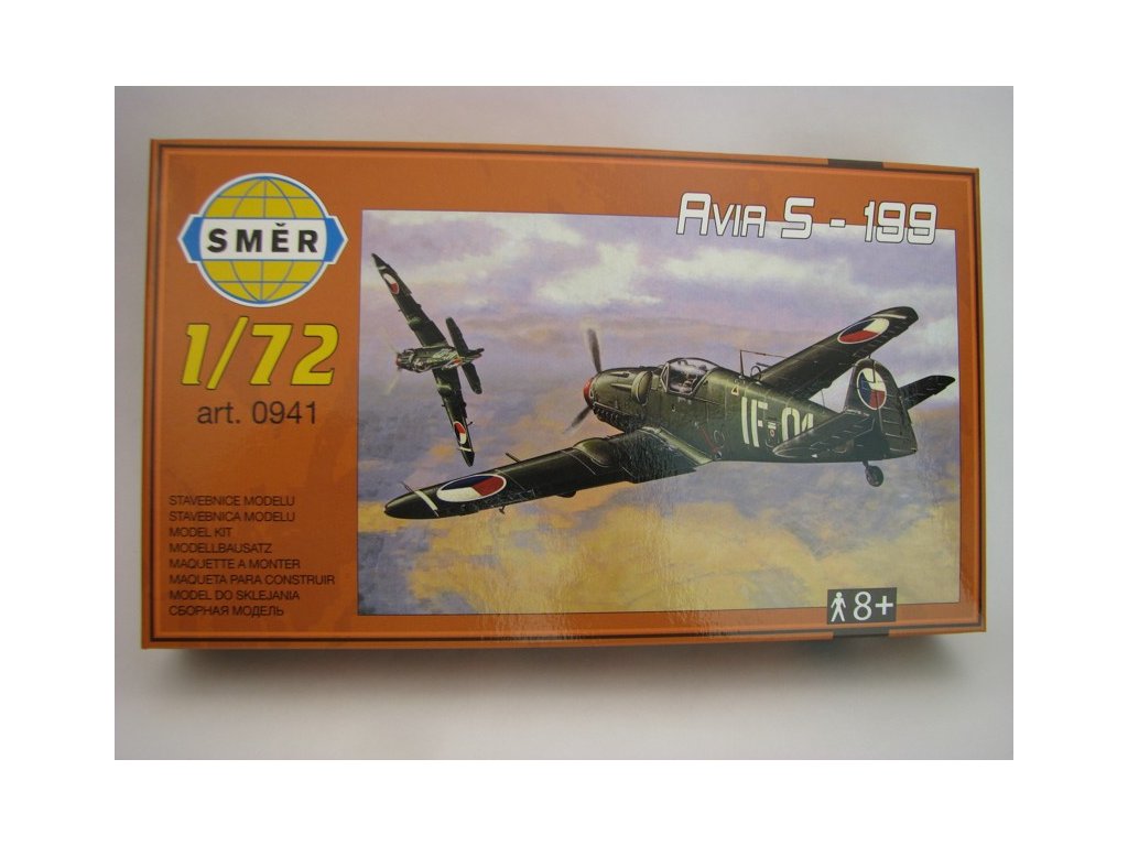 Plastiková stavebnice na slepení. Letadlo Avia S 199 stavebnice 1:72 Směr. Délka modelu 126 mm, rozpětí křídel 137 mm. Obsahuje 41 dílů a obtisky pro dvě kamufláže. Lepidlo ani barvy nejsou součástí stavebnice. Stavebnice obsahuje plastikové výlisky z původních forem podniku Kovozávody Prostějov.