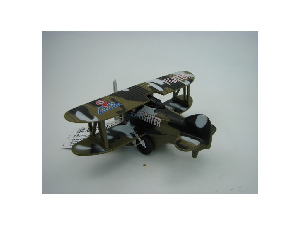 Letadlo Dvouplošník Khaki 12 cm Pull Back