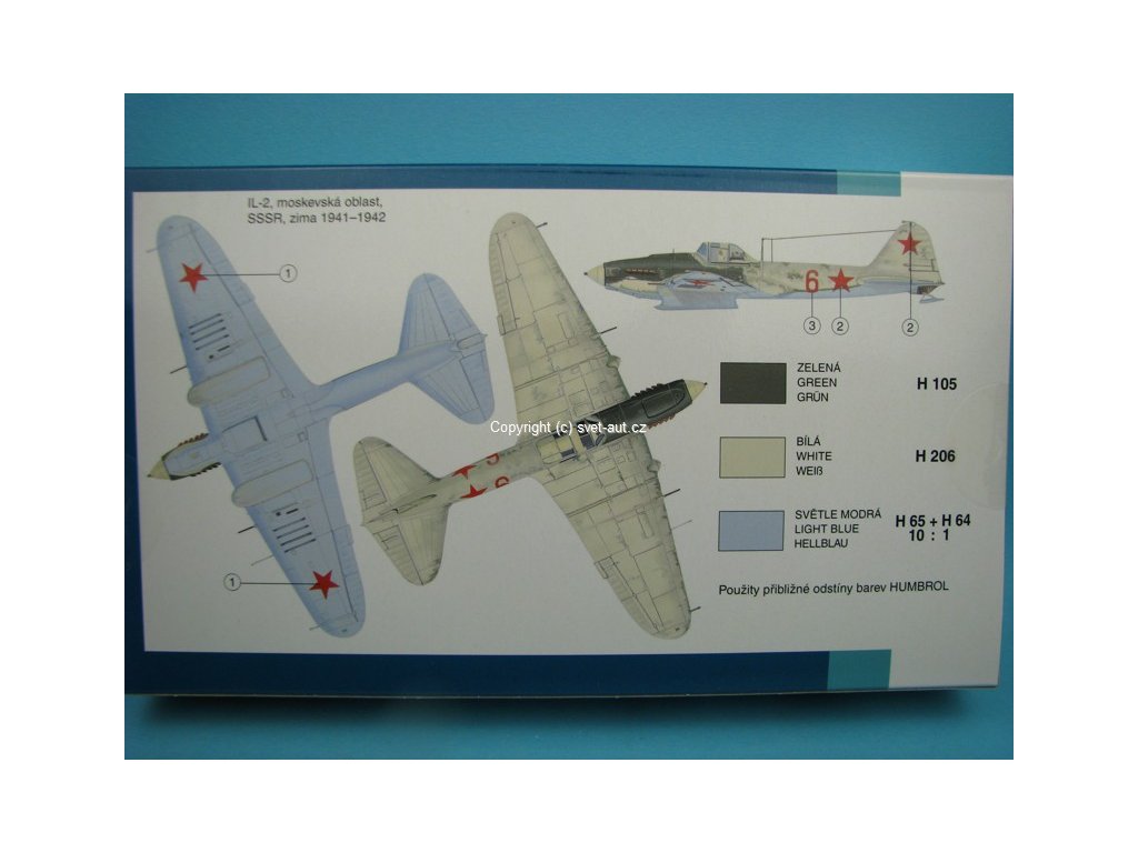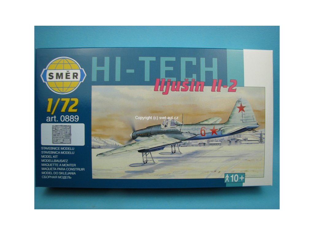 Plastiková stavebnice Letadlo Iljušin IL-2 HI-TECH stavebnice 1:72 Směr. Stavebnice obsahuje 126 dílů a kovové lepty, lepidlo ani barvy nejsou součástí. Délka postaveného modelu 16,1 cm a rozpětí křídel 20,3 cm.