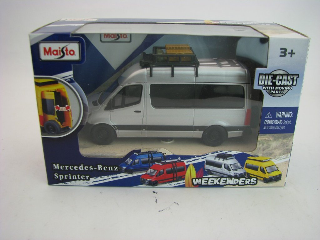 Maisto Weekenders Mercedes-Benz Sprinter obytný vůz Silver Maisto 21236. Kovový model s plastovými díly. Délka 10,5 cm. MST21236BL