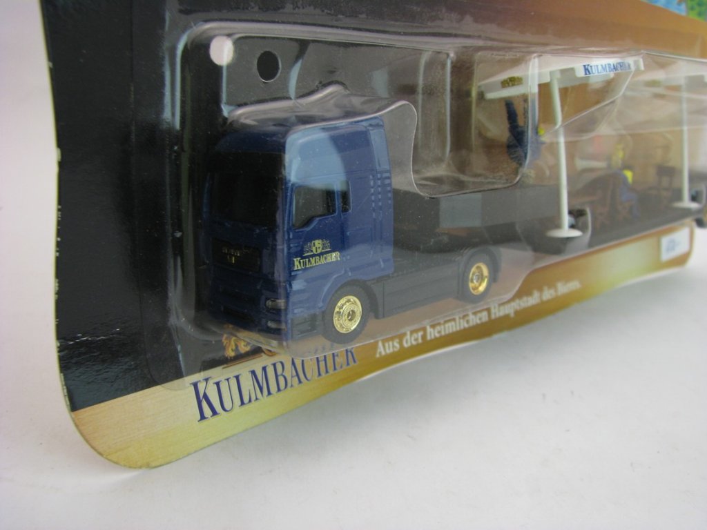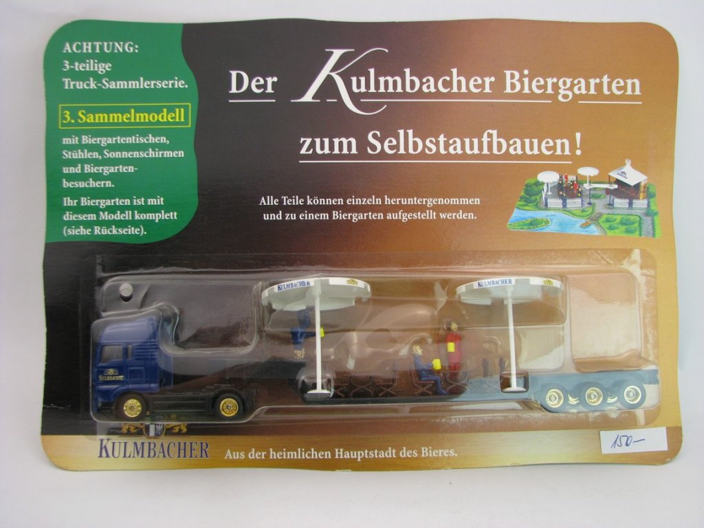 Man s návěsem Kulmbacher Biergarten Slunečníky reklamní model 1:87 Grell. Délka 24 cm. 0158/40834