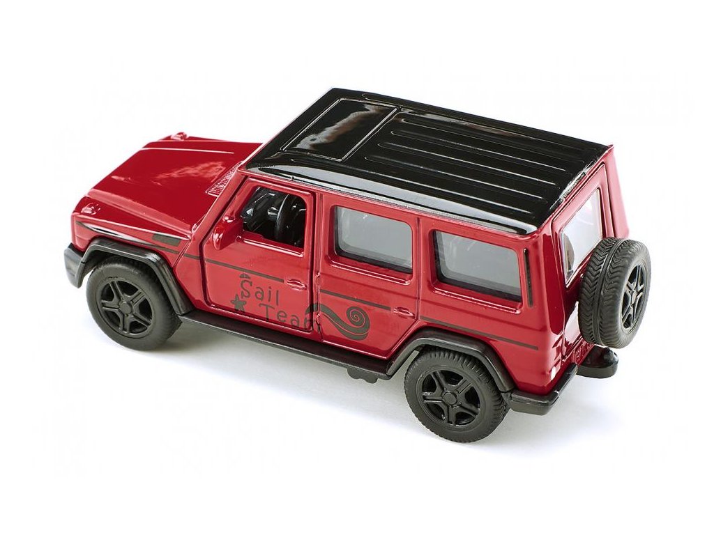 Mercedes-Benz AMG G65 s přívěsem a plachetnicí 1:50 Siku Super 2564. Blíží se další regata: zapřáhněte přívěs s plachetnicí, posádka nastoupí na traktor a uloží plachetní zavazadla na záď. Mercedes-AMG G65 s dvanáctiválcovým bi-turbo motorem o výkonu 630 k poskytuje dostatek pohonu. Tým ale není jen zábava řídit. Dveře řidiče a spolujezdce a zadní dveře lze otevřít, vyměnit kola a rezervní kolo vzadu. Velká plastová plachetnice (nevznášející se) je bezpečně přepravována v kovovém přívěsu. Stěžeň lze pro přepravu sklopit dozadu a sundat plachtu z lehké látky, posunout i kormidlo. Rozměry produktu Š x H x V (mm) 279x56x210. EAN4006874025640.