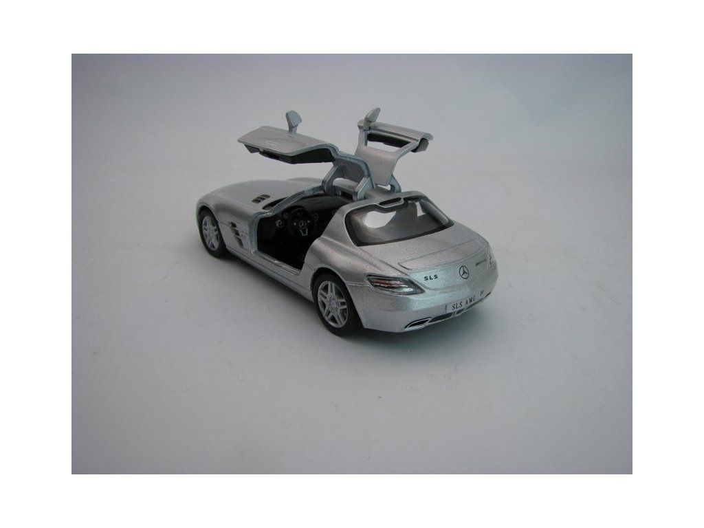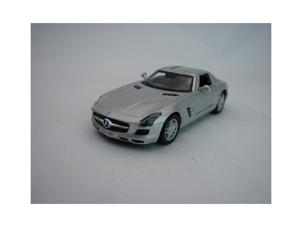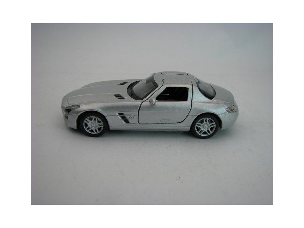 Mercedes-Benz SLS AMG Silver Pull Back 1:36 Kinsmart. Kovový model na zpětné natahování. KT5349D