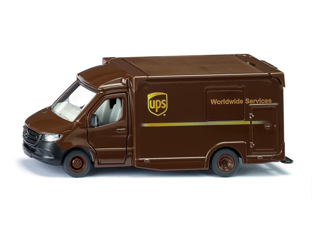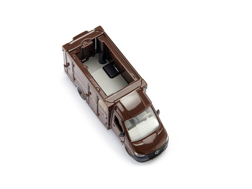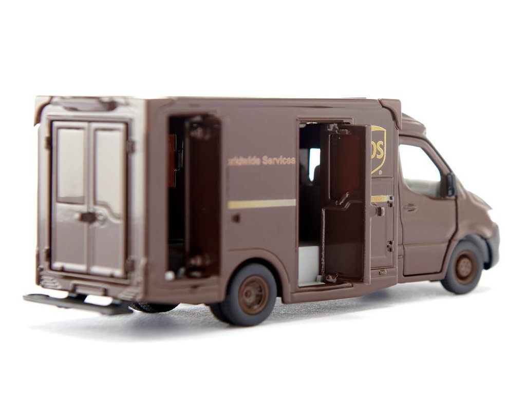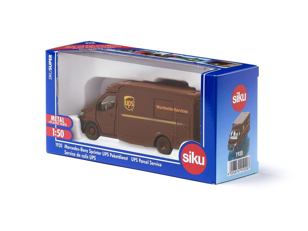 Mercedes-Benz Sprinter UPS 1:50 Siku Super Rychle doručované balíky – UPS každý den doručí více než 20 milionů balíků. Ty jsou dodávány ve výrazných tmavě hnědých balíkových vozech. A aby to bylo rychlejší, dveře řidiče a spolujezdce, dveře na pravé straně karoserie a zadní dveře u Mercedes-Benz Sprinter lze otevřít a odejmout střechu. Rozměry produktu Š x H x V (mm)127x50x55. Vhodné pro děti od 3 let. EAN4006874919208