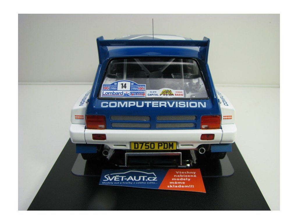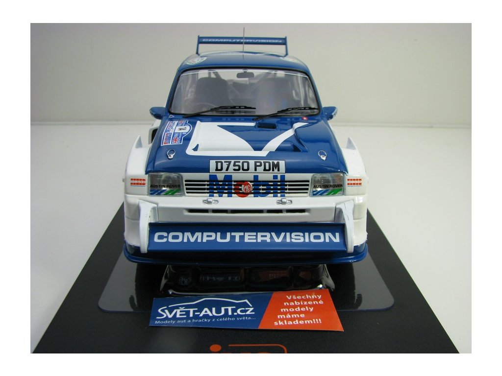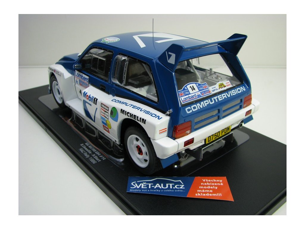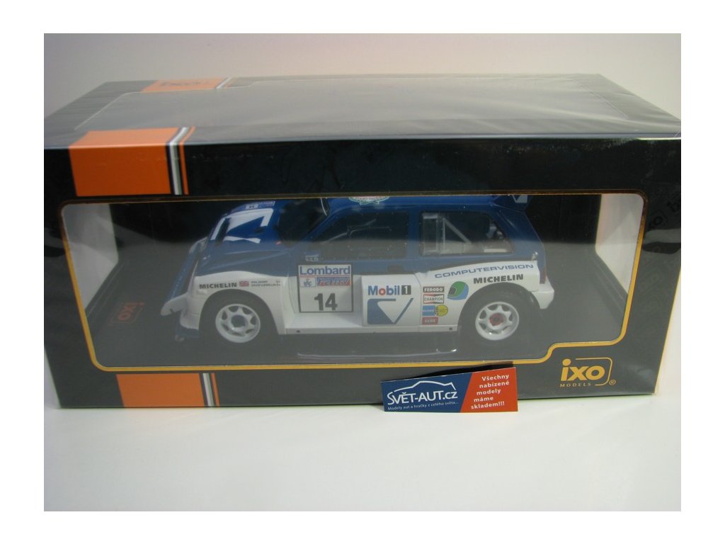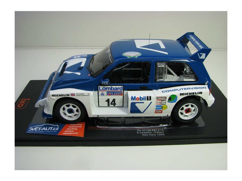Kovový model s plastovými díly. MG Metro 6R4 No.14 Liewellin RAC Rallye 1996 1:18 Ixo Models. Délka modelu je 20,5 cm. Model nemá otevírací části. Veškeré objednané zboží odesíláme do 24 hodin po přijetí objednávky. Model je skladem na prodejně v Děčíně, kde Vás rádi uvítáme.Diskuze