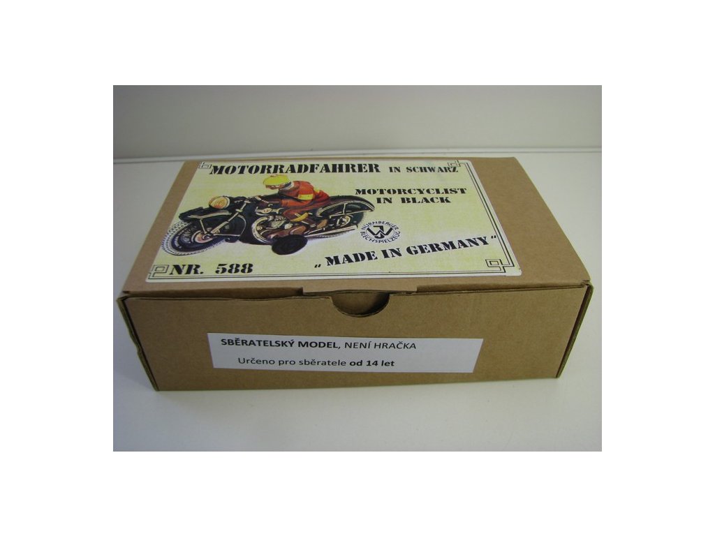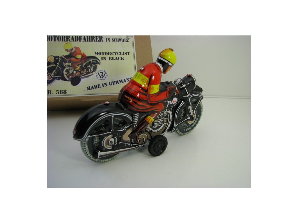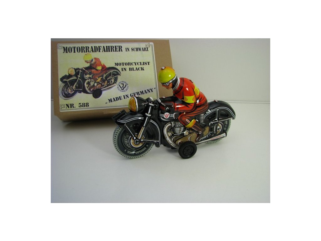 Motocykl s jezdcem černý na setrvačník Replika plechové hračky Germany