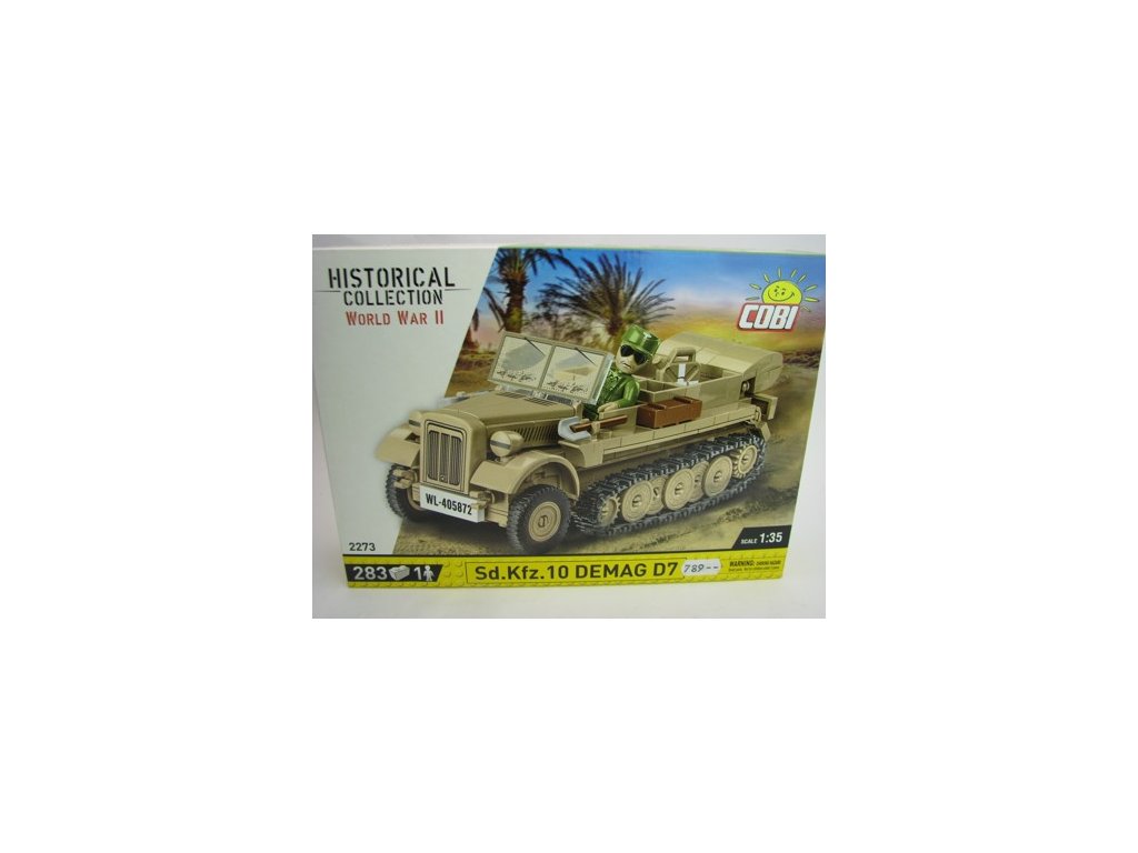 Německé polopásové vozidlo Sd.Kfz10 Demag D7 stavebnice 1:48 COBI 2273. Stavebnice modelu lehkého kolopásového vozidla Sd.Kfz. 10 Demag D7 v pískové kamufláži. Sestavený model má po stranách připevněné nářadí a přepravní bedny. Pásy vozidla jsou funkční a lze s ním snadno pojíždět po neklouzavém povrchu. Součástí balení je také figurka německého vojáka s kanystrem na vodu, která měla při africkém tažení cenu zlata a kostka s popisem. Stavebnice je na prodejně v Děčíně, připravena ihned k odeslání, nebo osobnímu převzetí. CO2273