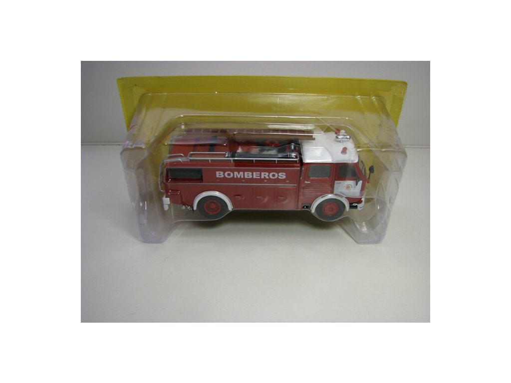 Kovový model s plastovými díly. Pegaso Comet 1091 Bomberos Barcelona Hasiči 1:43 Atlas Edition. Délka modelu je 15,5 cm. Baleno v blistru. Blistr byl otevřen pro lepší nafocení modelu.