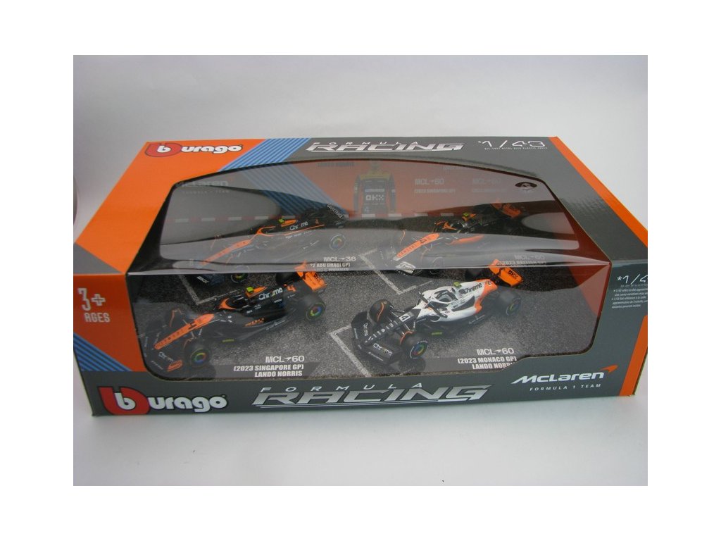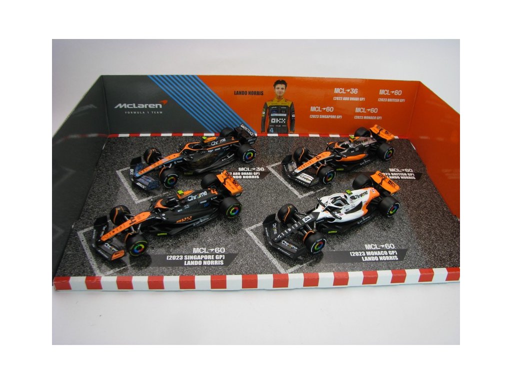 Set 4 modelů Formule 1 McLaren GP 2023 No.4 Lando Norris 1:43 Bburago