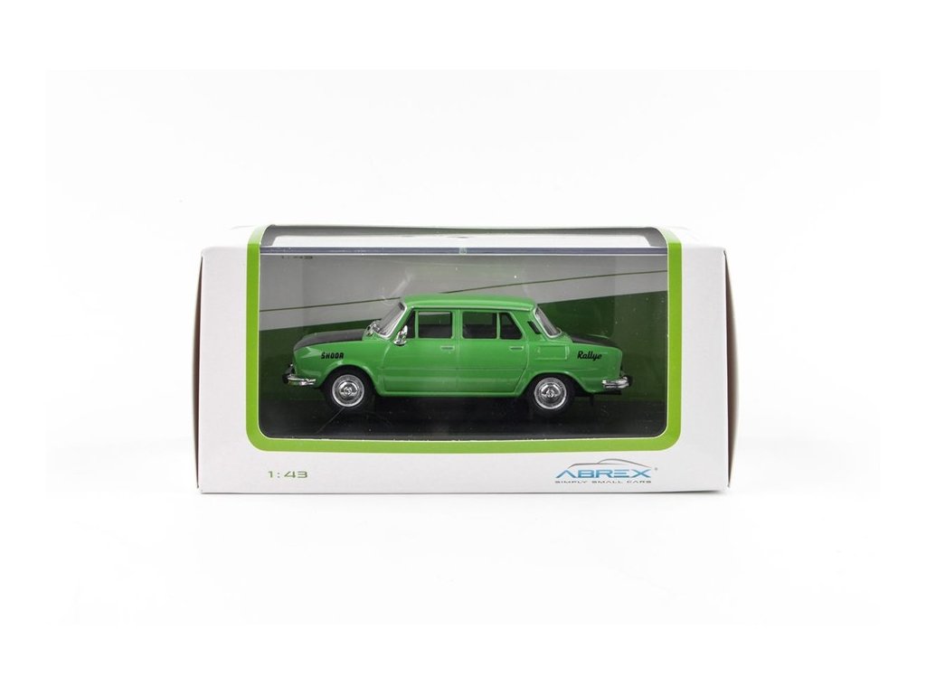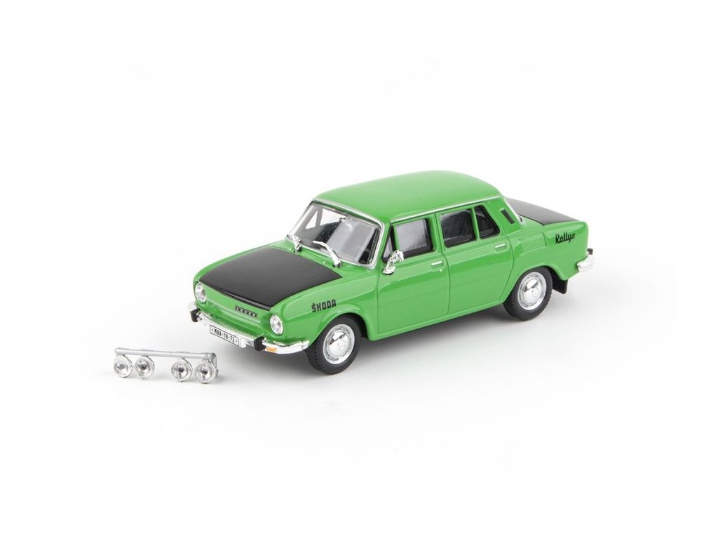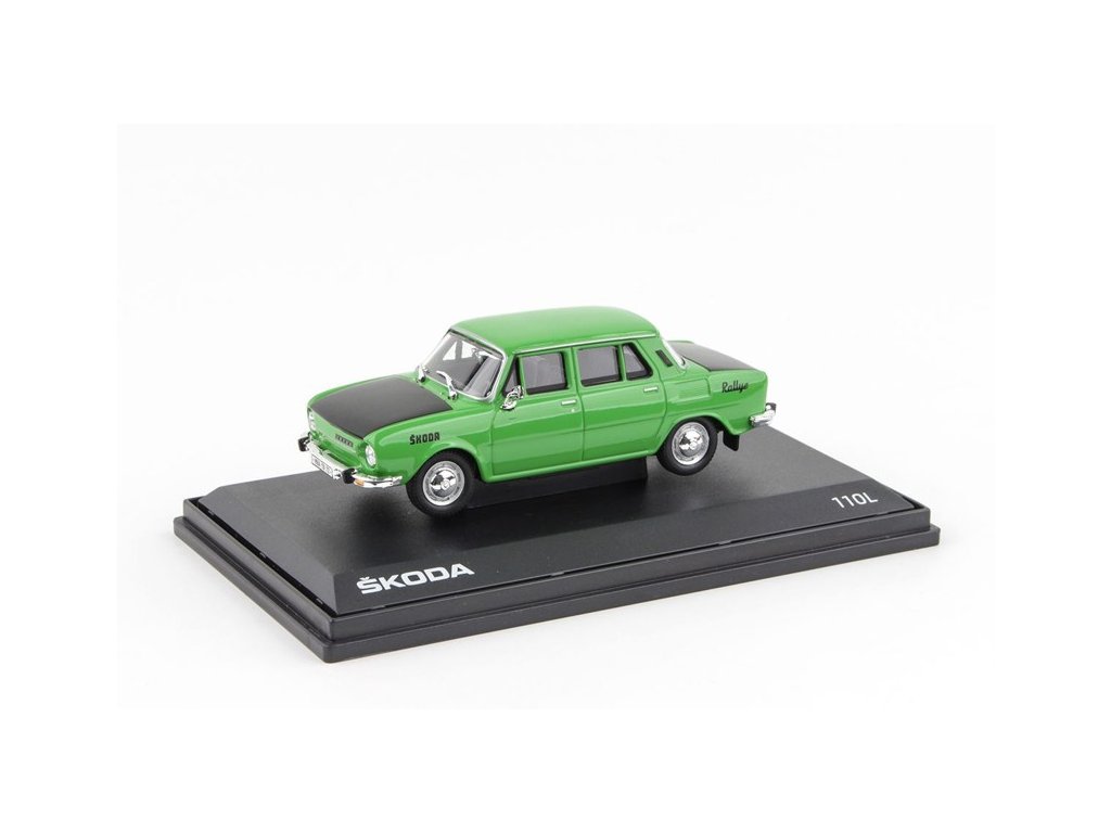 Kovový model s plastovými díly. Škoda 110L Rallye 1973 Rallye Design Zelená 1:43 Abrex. Škoda 110L vyráběná v letech 1969-1976 by dnes byla nazvána faceliftem 1000MB. Při jejím vývoji muselo dojít ke konstrukčním ústupkům, neboť se nepodařilo nalézt výrobce navrhovaných součástí. Přesto se nadále úspěšně exportovala do západoevropských zemí, v rozloženém stavu dokonce až na Nový Zéland. Zdůrazňujeme, že přiložená bonusová rampa se světly se v balení nachází pod podstavcem modelu (viz. zobrazené fotografie). Fota a text Abrex. 143XABS701Z