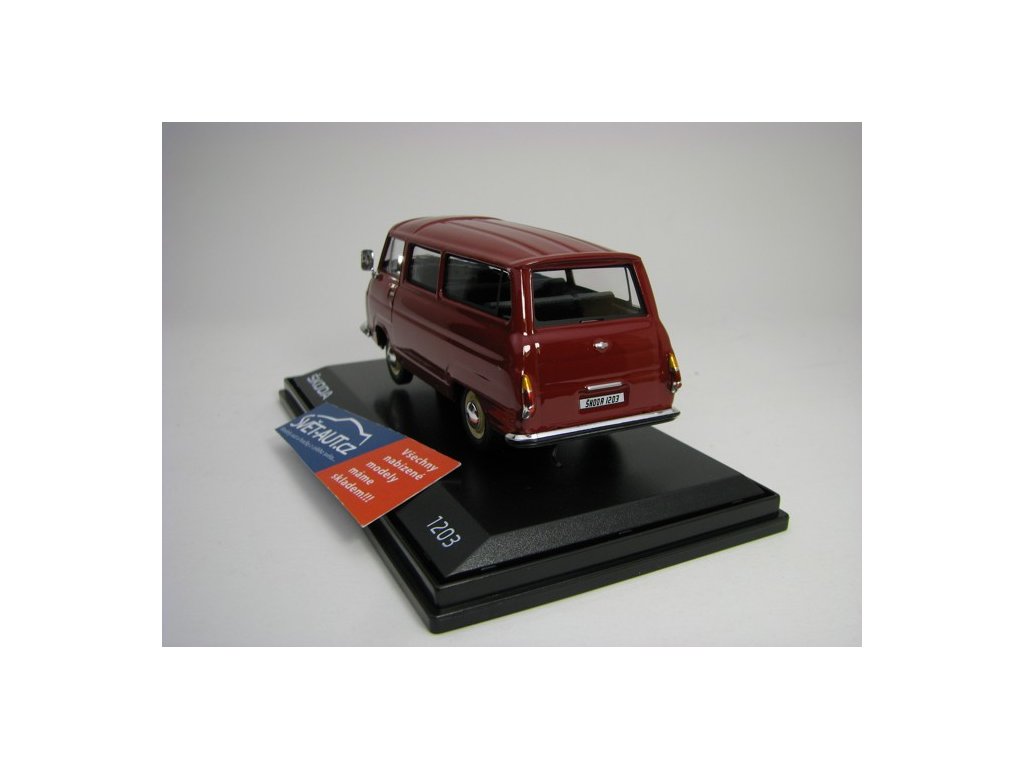 Kovový model s plastovými díly, v plastové vitrínce. Škoda 1203 mikrobus 1974 Červená Rubínová 1:43 Reedice Abrex. Délka modelu je 10,5 cm. Model skladem, ihned k odeslání.Doplňkové parametry