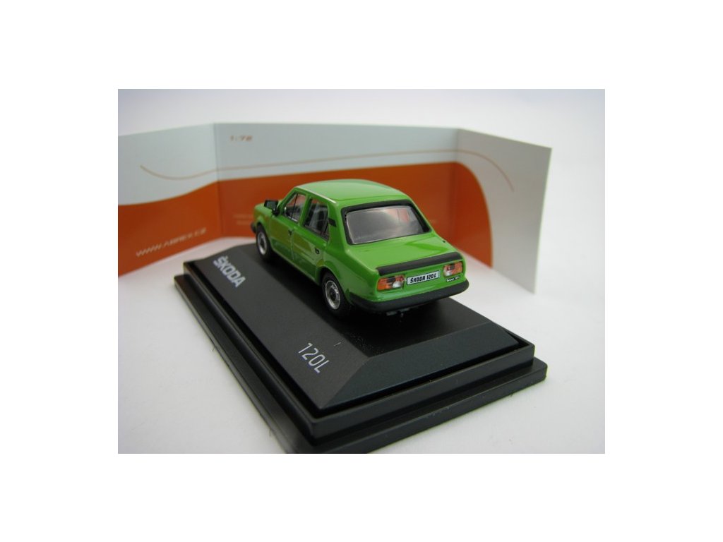 Kovový model s plastovými díly. Škoda 120L 1984 Light Green 1:72 Abrex. Délka modelu je 6 cm. 731ABD702HF
