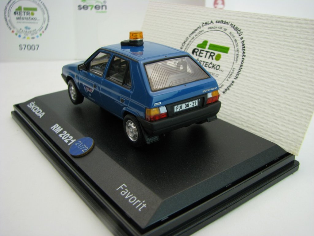 Kovový limitovaný model 15/72. Nafocen je originál model, který obdržíte. Škoda Favorit 1988 ČSAD Pardubice Retroměstečko Pardubice 2021 1:43 Abrex Seven Models. Délka 8,5 cm. S7007