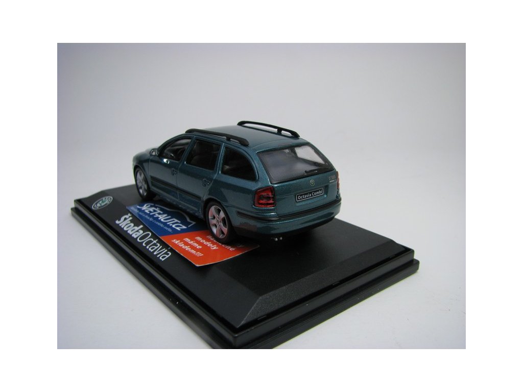 Kovový model Škoda Octavia Combi 2004 Q Green Island Metallic 1:43 Abrex. Model je dodáván v plastové vitrínce na podstavci, ke kterému je přišroubován. Déka modelu je 10 cm. 143AB002Q Green Island Metallic