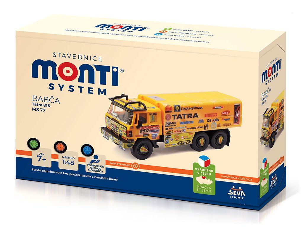 Plastiková stavebnice Tatra 815 Babča 1:48 SEVA Monti System 0104-77. Největší výhodou těchto stavebnic je, že k sestavení modelu autíčka nepotřebujete žádné lepidlo a barvy. Jednotlivé dílky jsou tak důmyslně vyrobeny, že s pomocí různých zacvakávacích zámků, úchytů a dalších pružných mechanismů sestavíte model bez jediné kapky lepidla. Vše do sebe jen zacvaknete nebo zasunete. Výsledkem je funkční model s úžasnými detaily, který je dokonalou replikou skutečné předlohy. Jednotlivé dílky jsou lisovány již barevné, takže nemusíte nic barvit. Navíc jsou některé dílky pochromované a u nových Monti Systémů mají některé stavebnice pro ještě realističtější vzhled gumová kola. V každém balení naleznete také samolepky, kterými si složený model můžete polepit. Stavebnice je na prodejně v Děčíně, připravena k okamžitému odeslání, nebo osobnímu převzetí.