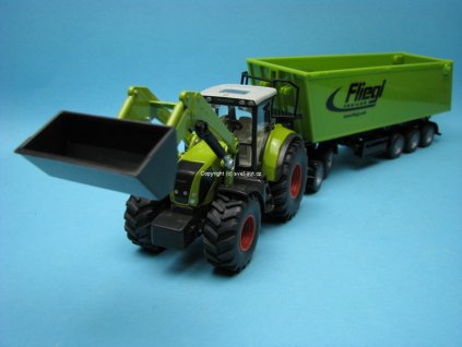 Traktor s modrým přívěsem na přepravu koní světlo zvuk Teddies