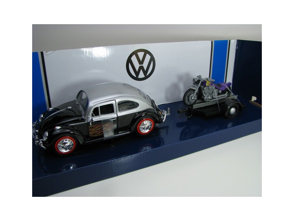 Volkswagen Beetle s přívěsem a motorkou 1:24 Motor Max