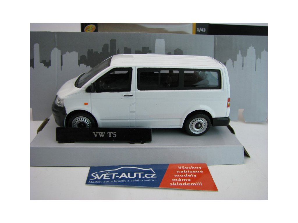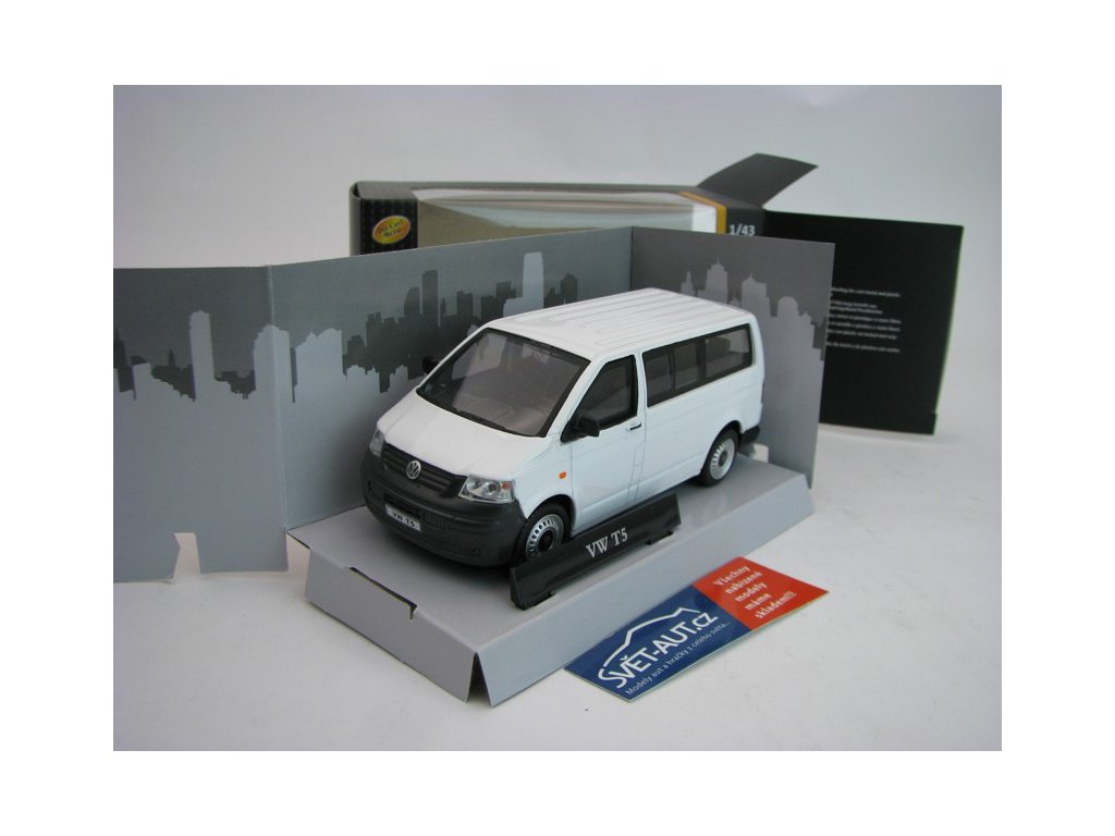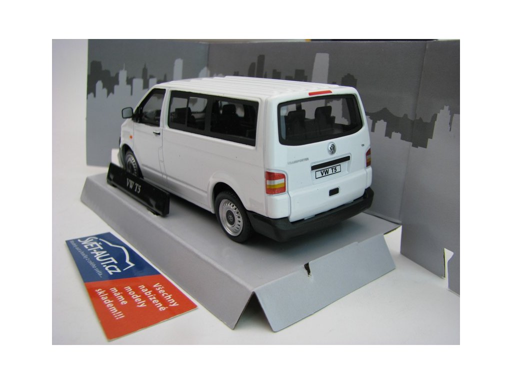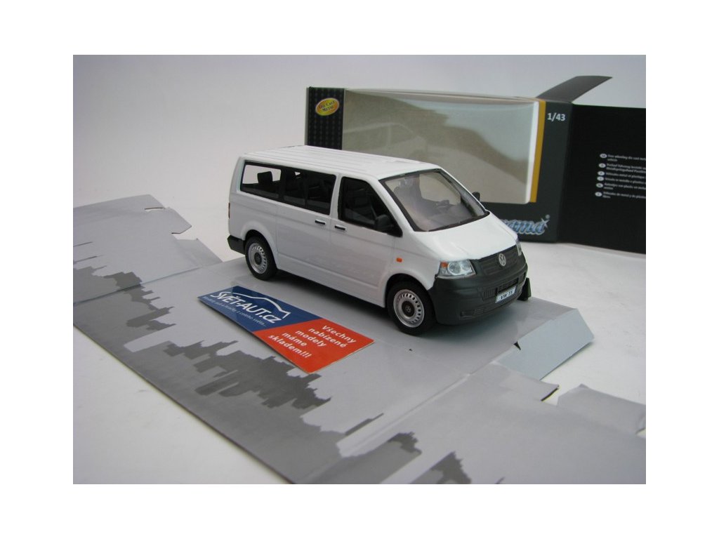 Kovový model s plastovými díly. Volkswagen T5 Mikrobus 2010 White 1:43 Cararama. Délka modelu je 10,5 cm.
