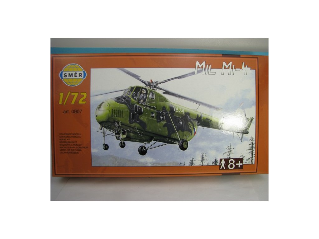 Plastiková stavebnice na slepení. Vrtulník Mil Mi-4 1:72 Směr 0907. Délka postaveného modelu je 23 cm. Průměr vrtulových listů je 29 cm. Stavebnice obsahuje 122 dílů z původních forem Kovozávody Prostějov.Doplňkové parametry