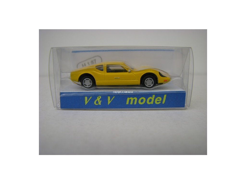 Kovový model Wartburg Melkus RS 1000 yellow 1:87 VV Model. Délka modelu je 4,5 cm. Ruční výroba, gumová kolečka.